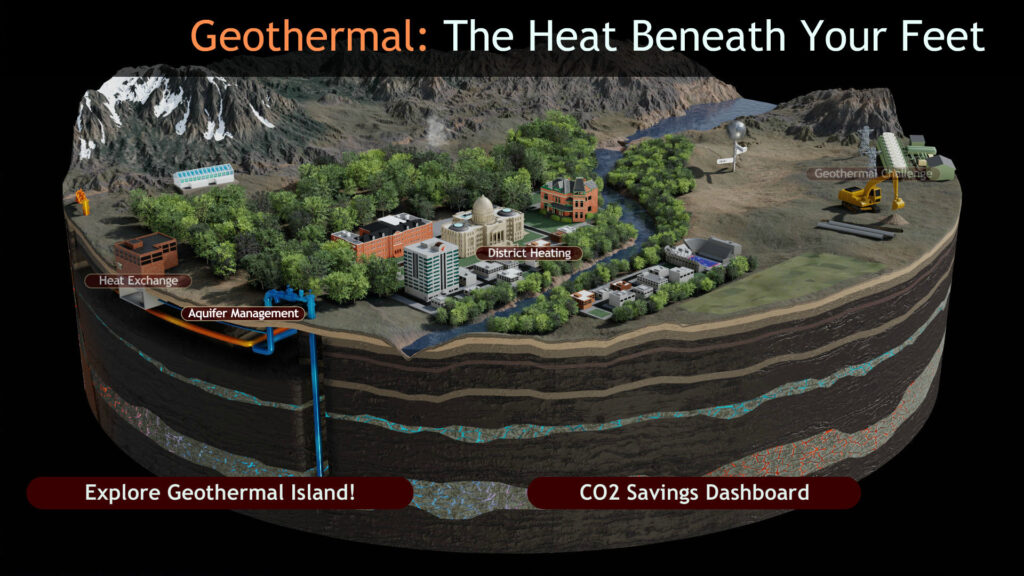Spin the earth and zoom into key areas to learn about the many aspects of geothermal energy and the nation's largest geothermal heating utility.
